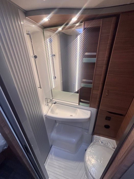 Cuisine / Salle De Bain Réchaud à 2 bruleurs avec couvercle en verre, evier an acier inoxydable, encastré Tiroirs de cuisnine avec fonction "Soft Close" Réfrigérateur à compression 150 litres Armature de haute qualité Tringle à vêtements pliable dans les toilettes ou la doucheS alle de bain confort avec douche et lavabo Toilette Thetford Capacité Des Réservoirs D eau Capacité (Litres) réservoir eaux usées 95 Capacité (Litres) réservoir eau propre 95 Gaz / Chauffage / Climatisation / Eau Système de gaz 30 mbar Tuyau gaz version CH/FR Régulateur gaz version CH/FR Système de recirculation d‘air 12 V Chauffage diesel TRUMA Combi 6D TRUMA commande CP Plus Réservoir eaux usées isolé et chauffé Alimentation en eau avec pompe immergée Alimentation en eau chaude avec robinet mitigeur Conduites d eau posées dans la zone isolée