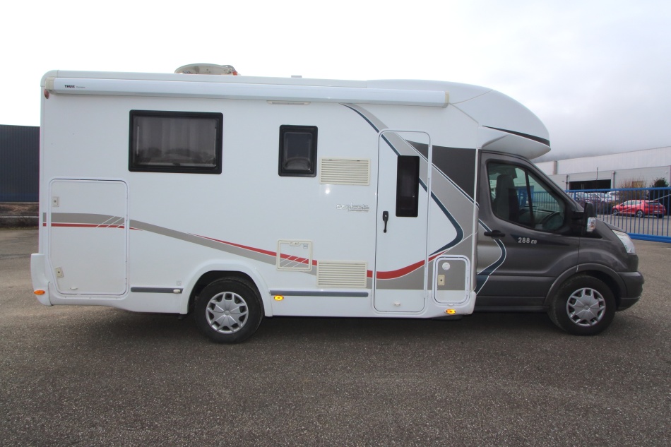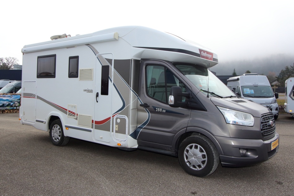 camping car challenger spéciale édition 288 EB sans AD blue 4 places année 2016 frigo, télévision, douche wc séparé, grande soute, lit central et lit pavillon éléctrique , porte vélo, gpl, grand store, moteur à chaine.
