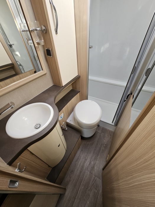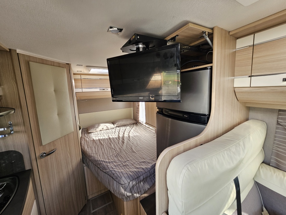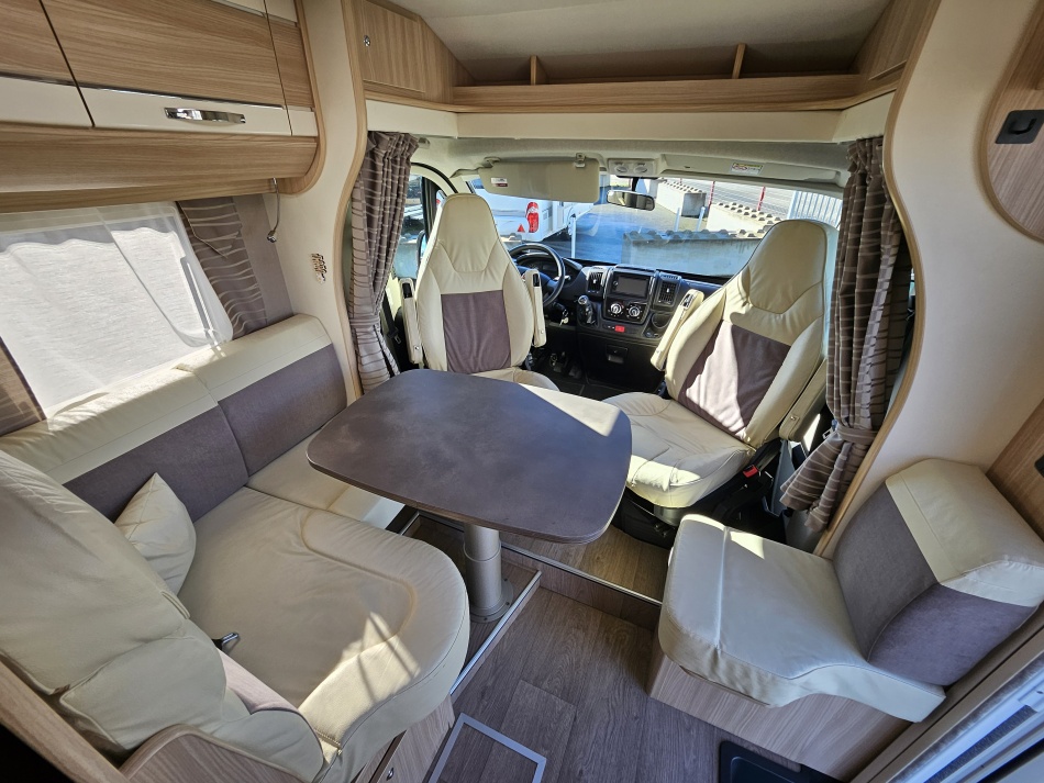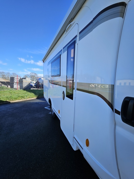 FLEURETTE BAXTER 60LG IMPLANTATION - sièges confort pivotants réglables en hauteur - poignées de meuble finition chrome – salon 4 places -soute de rangement sous lit – salle d’eau Cabine de douche séparée – réfrigérateur 145L - chauffage TRUMA - lit à la française PORTEUR Fiat DUCATO - Motorisation fiat ducato 2,3L - 150 CV – Châssis Camping-Car -Rayon de braquage ultra, court - Climatisation cabine - Rétroviseurs électriques – V.E – F.C - Système - Verrouillage centralisé cabine – jantes alliage 15 pouces - autoradio kenwood OPTIONS : Store extérieur– Caméra de recul – Panneau solaire 100W– antenne automatique + TV lcd - attelage ALKO - porte 2 vélos - store remis front INFORMATION UTILES : L x l x h : 5.99 x 2,23 x 2,70 m - PTAC/CU (kg) : 3500/746 - Places C.G./nuit/repas : 4/3/4 – lit à la française